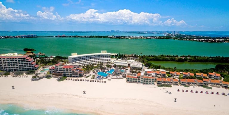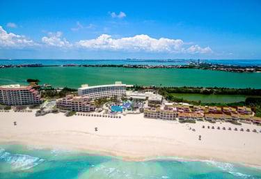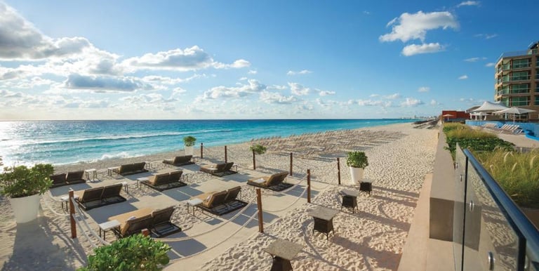 Ubicado en plena Zona Hotelera, este resort frente al mar Caribe combina elegancia, gastronomía gourmet y albercas infinitas.